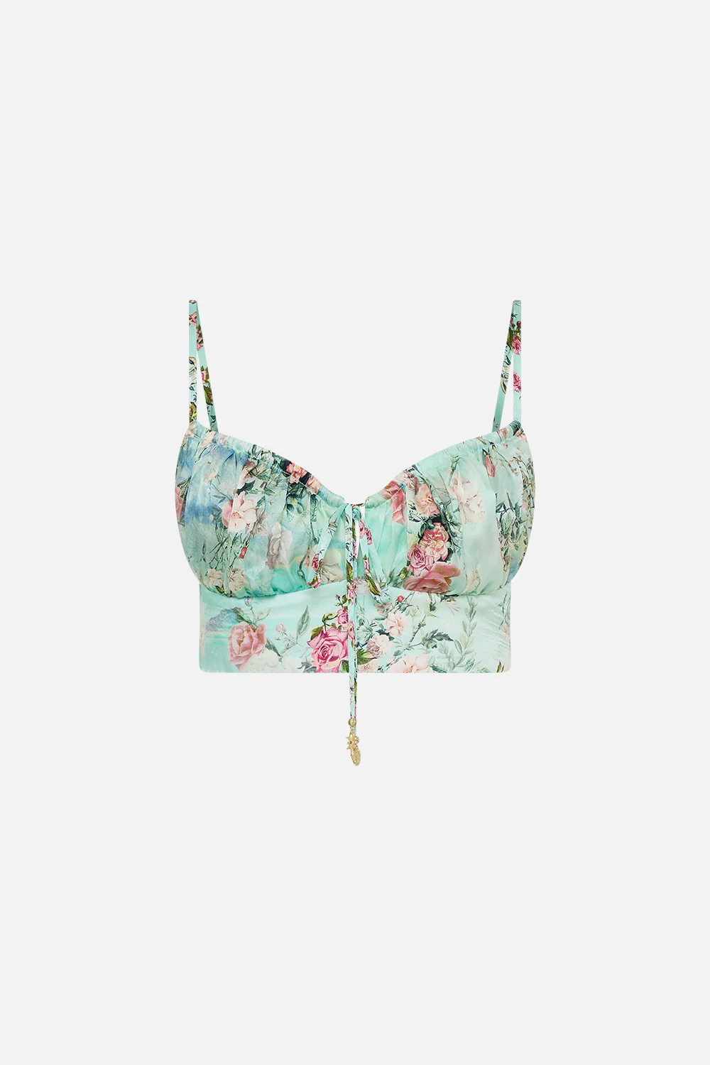 Designed in Australia, The Jewellery Museum Gathered Bralette weaves together the opulent mystique of Alexandria’s hidden treasures with sumptuous florals and the richness of azure skies, crafting a serene valley brimming with elegance. Lovingly handcrafted, this alluring silk crop bralette top is tailored to perfection with a shaped bust area and fitted cropped waist bodice. Adjustable straps and hook-and-eye enclosures provide an opulent and personalized fit.