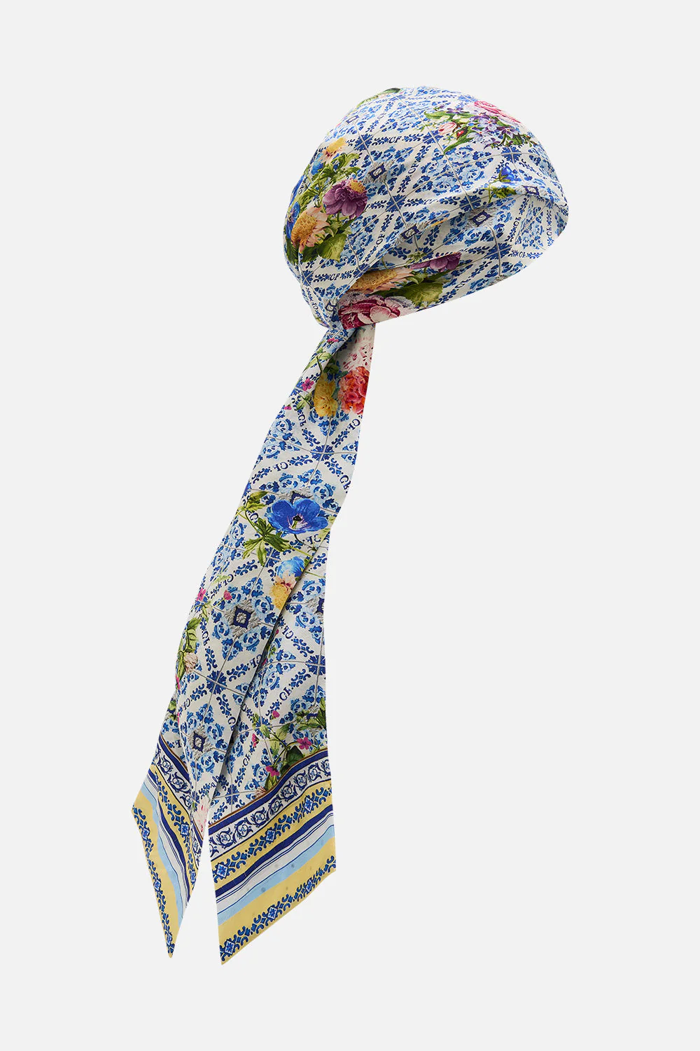 Designed in Australia, The Wall To Wall Wonders Headscarf With Long Ties captures the grandeur of Queluz Palace, with soft blues and golden yellows of Azulejo tiles, blending history and artistry in a panoramic view of Portugalās timeless beauty. Lovingly handcrafted, this CAMILLA printed headscarf features long, adjustable ties at the back and is adorned with resplendent crystal embellishments, adding a touch of elegance to its versatile design