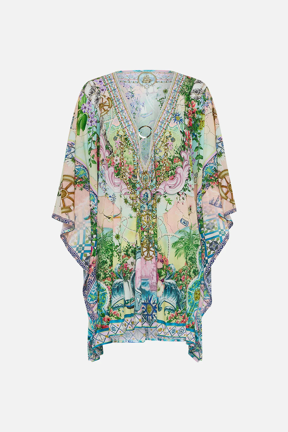 SHORT V NECK KAFTAN WITH RING FRONT TRIM JUST COASTING