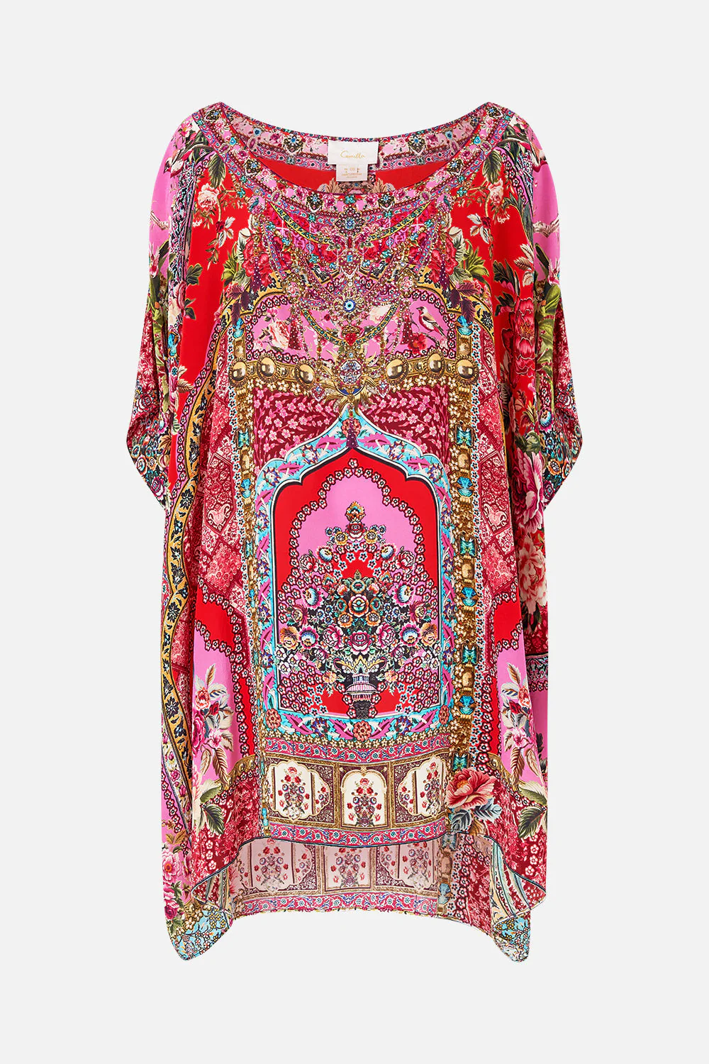 The Heirloom Empire Short Round Neck Kaftan is a handcrafted silk silhouette designed by our in house artisans. Reimagined in an exclusive limited edition print, our short kaftan is meticulously designed to shapeshift with a generous rounded neckline adorned with cropped sleeves that float into a relaxed mini silhouette.