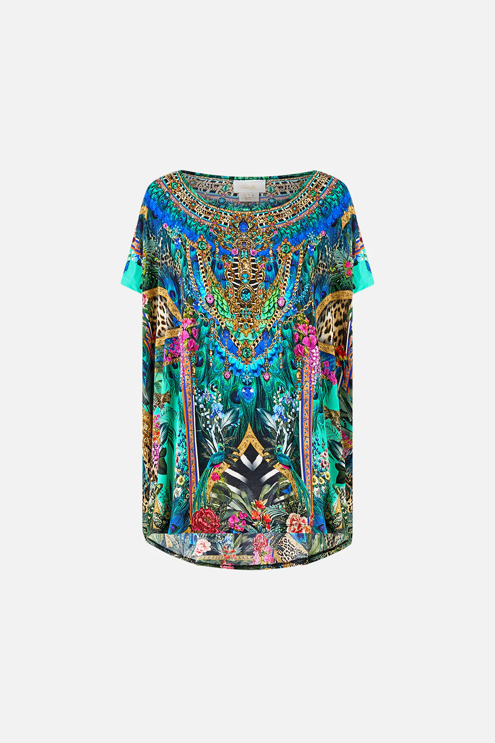 The Animal Alchemy Loose Fit Tee is a handcrafted silhouette designed by our in house artisans. Reimagined in an exclusive limited edition print, our loose fit tee is relaxed fitting and features a soft, scoop neckline that is adorned with short sleeves. Its finished with intricately placed crystal embellishments.