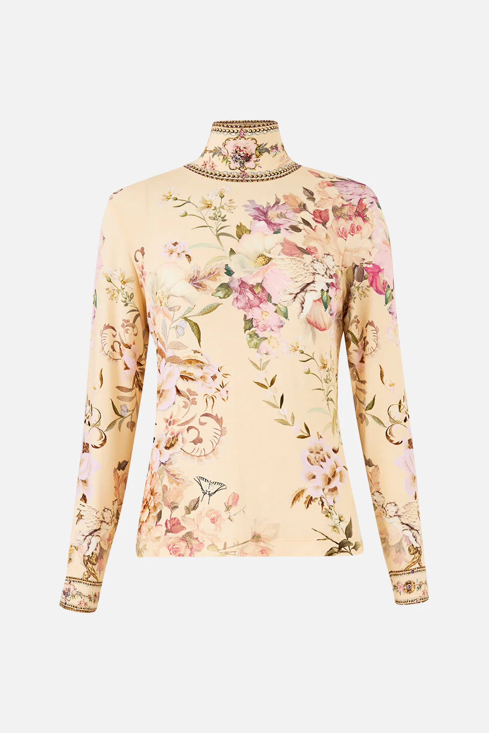 The Adorned In Aranjuez Jersey Turtleneck is a handcrafted silhouette designed by our in-house artisans. Created in an exclusive limited edition print, our jersey turtleneck is sculpted by a soft structured neckline and long sleeves. It's finished with intricately placed crystal embellishment.