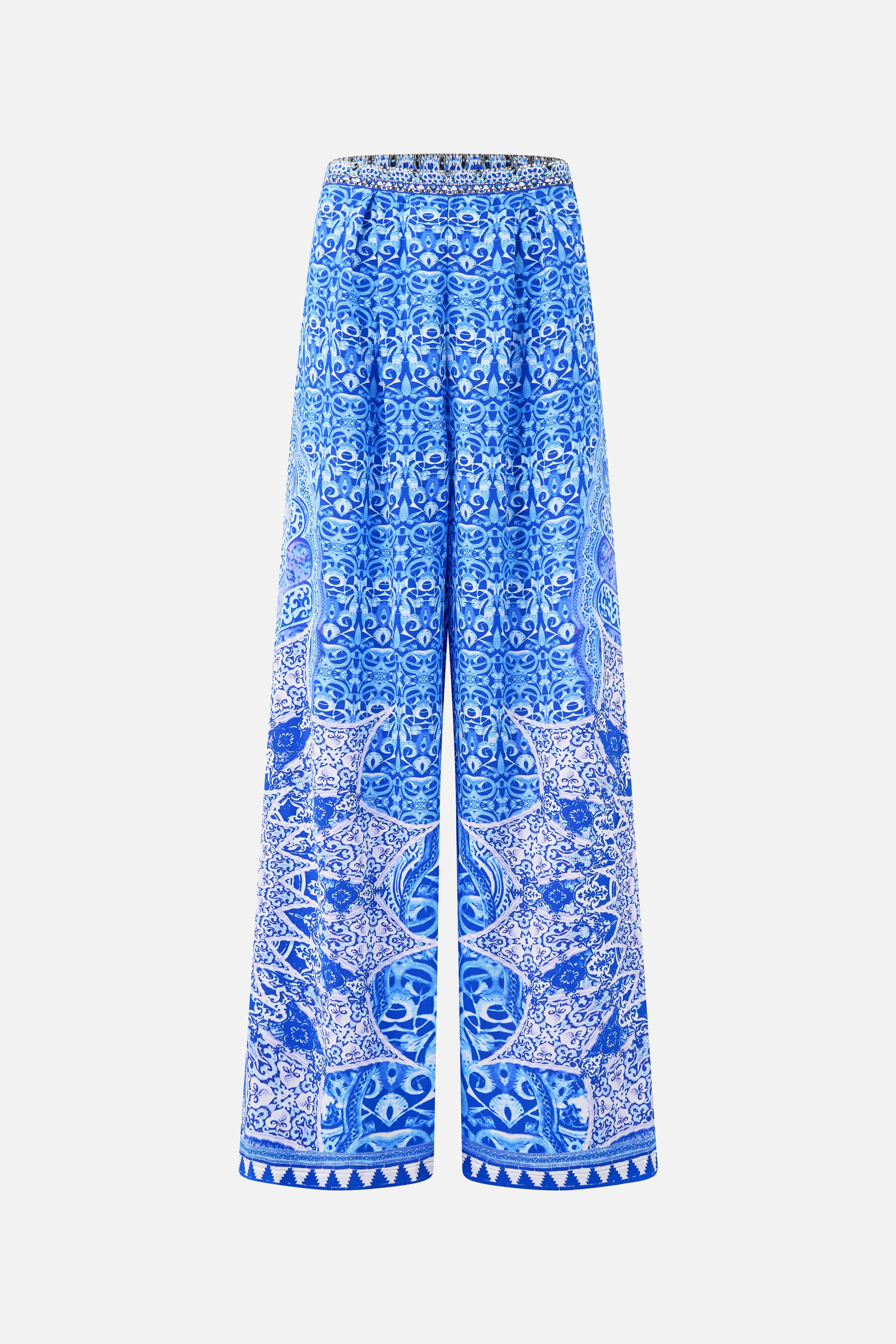 The The Bosphorous Tuck Front Pant is a handcrafted silk silhouette designed by our in house artisans. Reimagined in an exclusive limited edition print, our full length pants are cut to a relaxed fit, with a wide leg and elasticated waist for effortless comfort. Soft tucks at the front elevate the shape with subtle structure and movement.